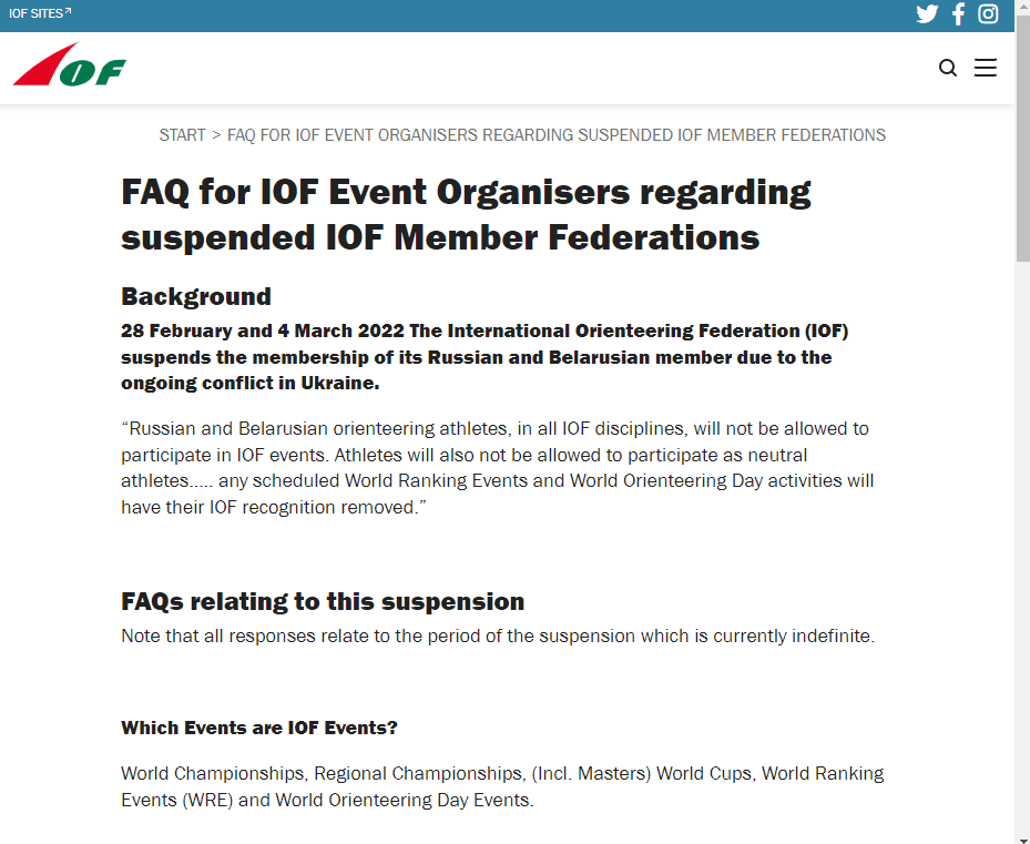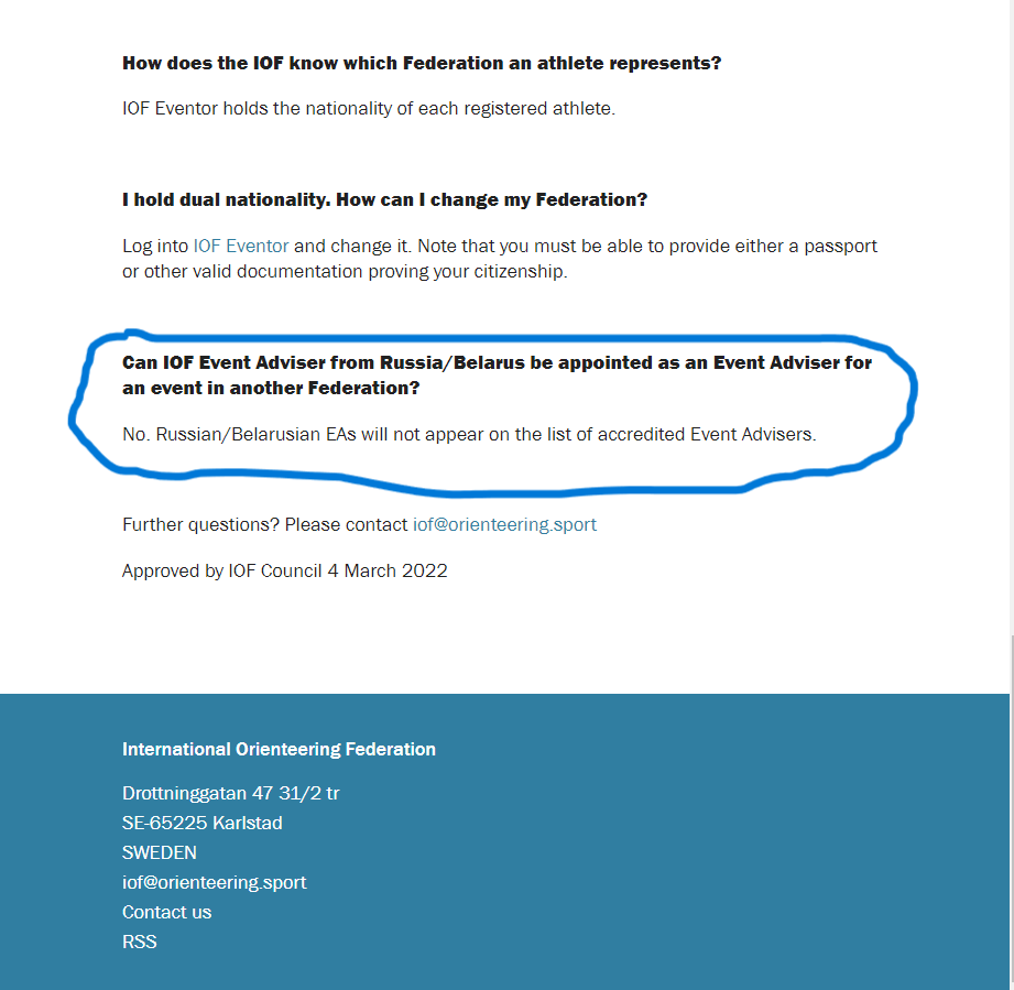 “Can a IOF Event Advisor from Russia/Belarus be appointed as an Event Advisor for an event in another Federation?” The answer is “No”.